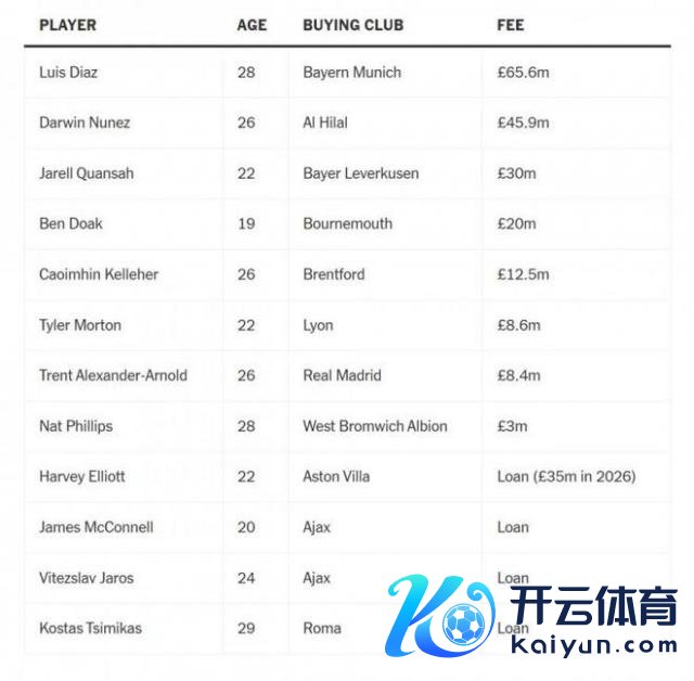 今夏利物浦 12 东谈主以转会或租出体式离队,换回了 1.94 亿镑