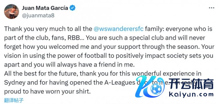 马塔写说念:“极端感谢西悉尼散步者俱乐部天下庭——俱乐部里的每一位成员、球迷们。你们是如斯非常的一家俱乐部,我永久不会健忘你们对我的原宥,以及统共赛季里赐与我的因循。”