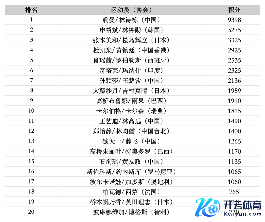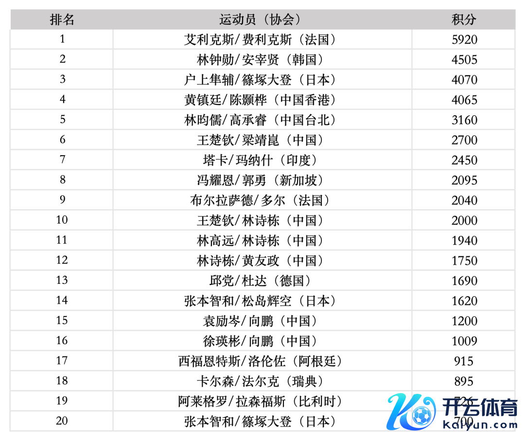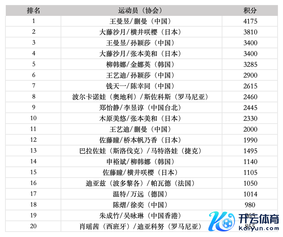 双打方面林诗栋/蒯曼依旧占据混双头名,王曼昱/蒯曼仍位列女双榜首,法国组合艾利克斯/费利克斯领跑男双排名。