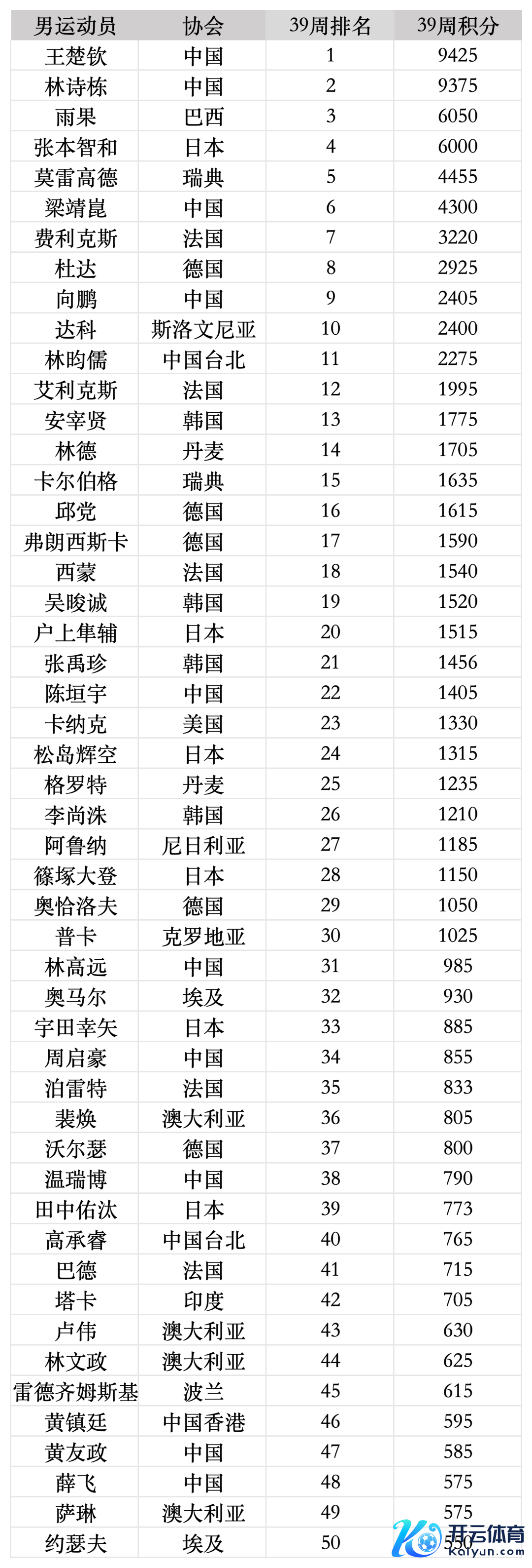 9月23日,国外乒联公布了2025年第39周宇宙排名。