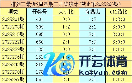 三、体彩成列三前9周星期三奖号永诀开出:401-309-695-660-123-151-812-178-561,其中号码012路比为11:9:7,奇偶比为15:12,大小比为12:15;