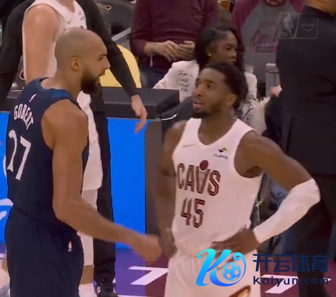 1月11日讯 昨日NBA老例赛,骑士主场146-134驯顺丛林狼,前爵士队友米切尔与戈贝尔在比赛中互动。