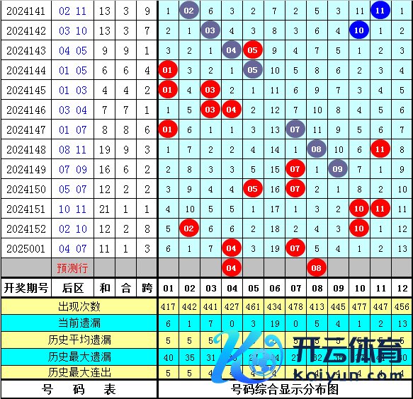 上期转头:体彩大乐透第2025001期开出号码:05 08 16 17 27 + 04 07,其中前区奖号余数奇偶比为3:2,大小比为5:0,012路比为1:2:2,大中小比为3:2:0,后区奖号余数奇偶比为1:1,大小比为1:1。