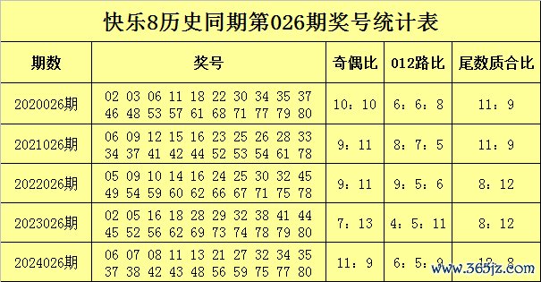苏苏欢娱8历史同时第026期号码分析