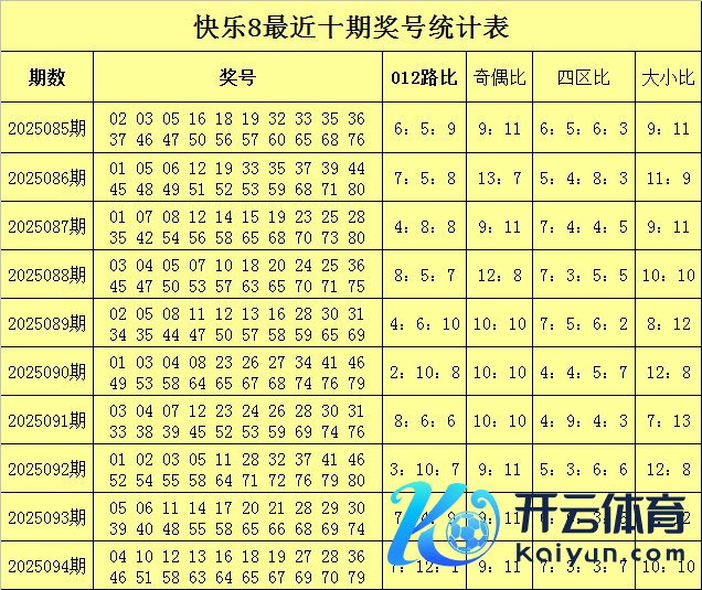 福彩快意8第2025094期开奖回归:04 10 12 13 16 18 19 27 28 36 46 51 58 63 64 65 67 69 70 79,其中奖号012路比为7:12:1,四区比为7:3:3:7奇偶比为9:11,大小比为10:10。