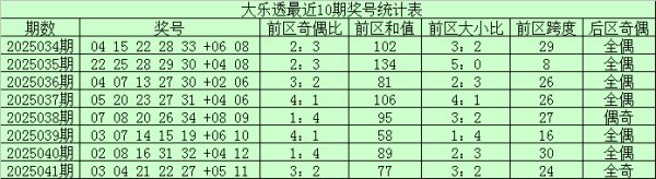 大乐透第25041期奖号为:03、04、21、22、27+05、11。其中前区和值为77,奇偶比为3:2体育录像/图片,大小比为3:2。后区为一大一小、全奇组合。