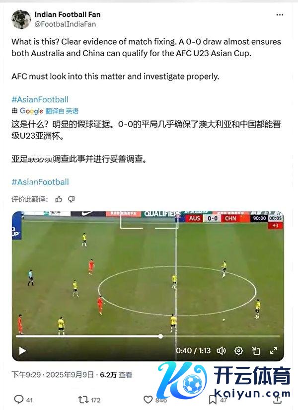 然而这场比赛的终末几分钟仍是引起了雄壮的争议,澳大利亚的后卫在场上颠球秀脚法,而国足的时尚也不向前逼抢,这被以为是两队在踢领悟球。赛后的印度队成为这场比赛最大的就义品,也很是挣扎,在酬酢平台上晒出视频:正因为这是无可争议的假球,但说真话这场比赛大家踢成这样亦然心照不宣的。