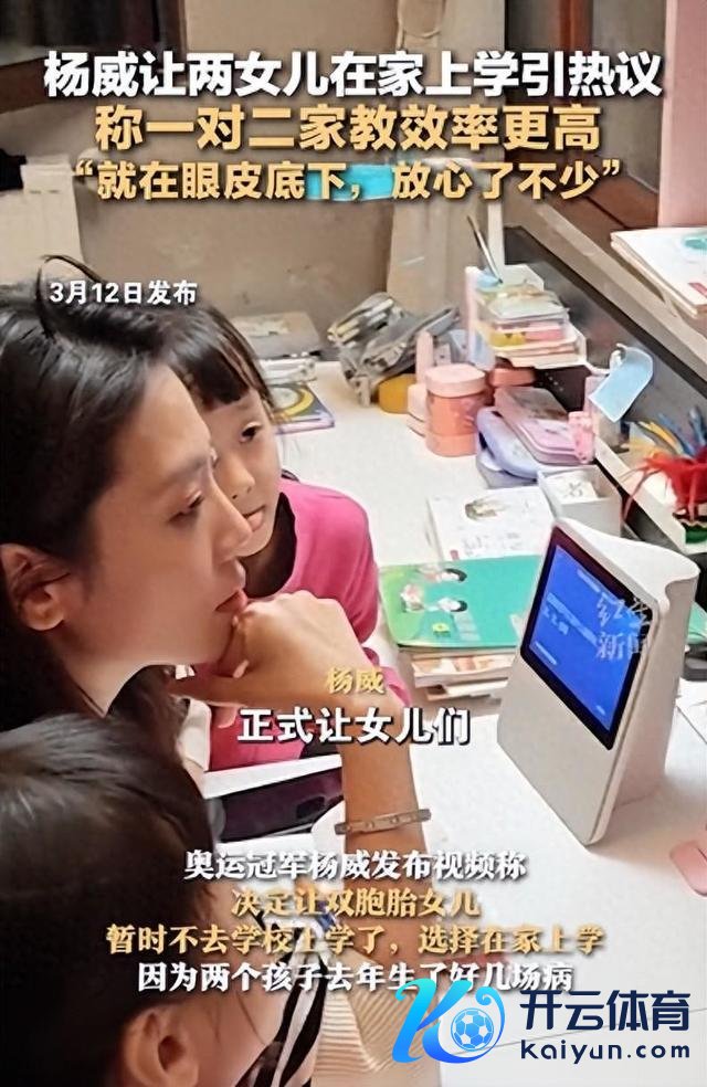 2023年3月13日,体操明星杨威告诉内行,他的一年级双胞胎女儿不再去学校,而是选拔在家里接受私东谈主教师的提醒,这一决定引起了网上猛烈的讨论。