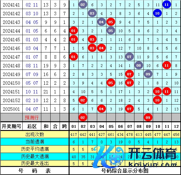 其中,号码奇偶比为52:48,大小比为48:52,012路比为33:40:27,本期前区龙头号码参考02。