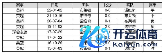 诺维奇 VS 布莱顿两队近10年的交战次数为8场,诺维奇2胜3平3负,赢球概率为25.0%,平局概率为37.5%,输球概率为37.5%。