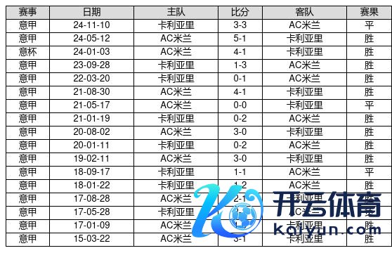 AC米兰 VS 卡利亚里两队近10年的交战次数为17场,AC米兰13胜3平1负,赢球概率为76.5%,平局概率为17.6%,输球概率为5.9%。