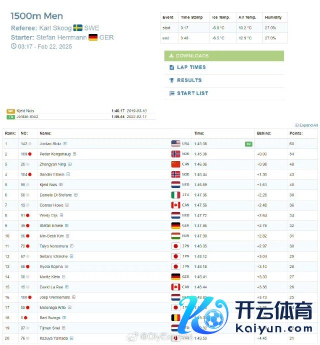 在男人1500米比赛中,好意思国选手斯托尔兹以1分45秒08夺冠,宁忠岩赢得铜牌。