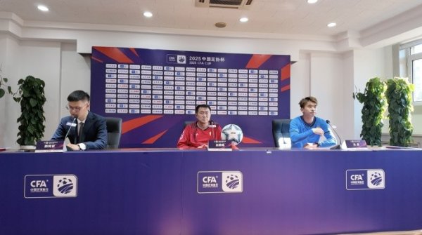 6月21日晚,2025中国足协杯第4轮,大连鲲城主场对阵青岛西海岸的赛前发布会举行,大连鲲城推行主教导赵发庆携队员雷文凸起席。