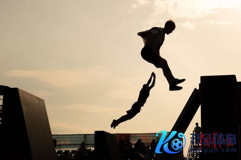 8月13日,成王尘间运会跑酷须眉竞速决赛,畅通员在夕阳下比赛。汪龙华/摄