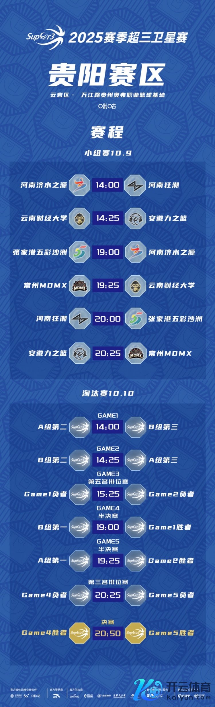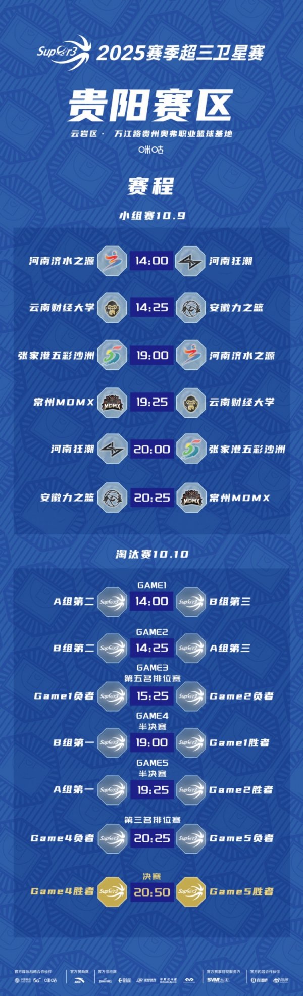 2025赛季中国须眉三东谈主篮球超等联赛卫星赛(简称“超三卫星赛”)临了1站比赛赛程发布!本站比赛将于10月9日-10月10日在贵阳赛区举办体育赛事直播。