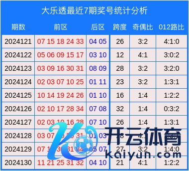 上期开奖号码的前区跨度为21,奇偶比4:1,012路比为1:2:2。