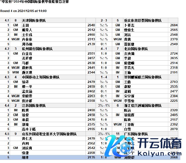 至此本赛季外洋象棋甲级联赛第5至8名及降组名单扫数产生。12月6日,将不竭进行半决赛四轮顽抗的第3轮比拼。