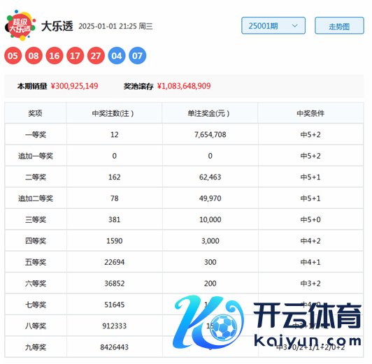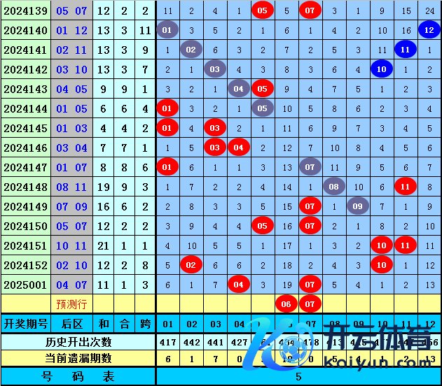 大乐透第2025001期开奖,前区:05、08、16、17、27;后区:04、07。其中前区012路比为1:1:3,奇偶比为3:2,和值为73,跨度为22,后区开出1路+1路号码。