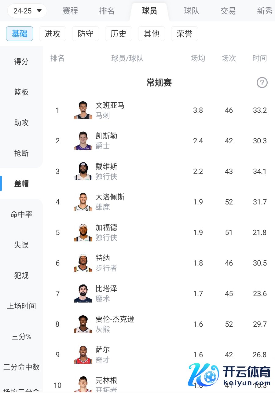 本赛季,文班亚马代表马刺出战46场老例赛,场均孝顺24.3分11篮板3.7助攻1.1抢断3.8盖帽。在盖帽一项数据当中,文班断档跨越第二名的爵士球员凯斯勒。