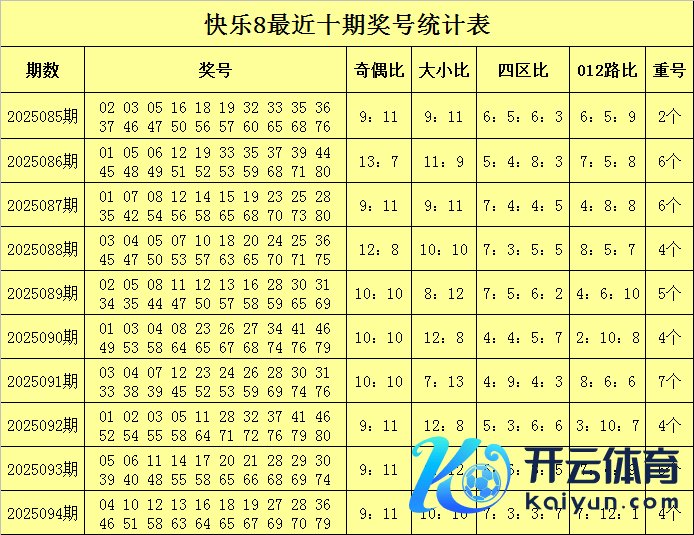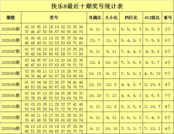 福彩昌盛8第2025094期开奖回归:04 10 12 13 16 18 19 27 28 36 46 51 58 63 64 65 67 69 70 79,其中奖号奇偶比为9:11,大小比为10:10下球网体育信息,四区比为7:3:3:7,012路比为7:12:1,重号4个:28、58、65、69。