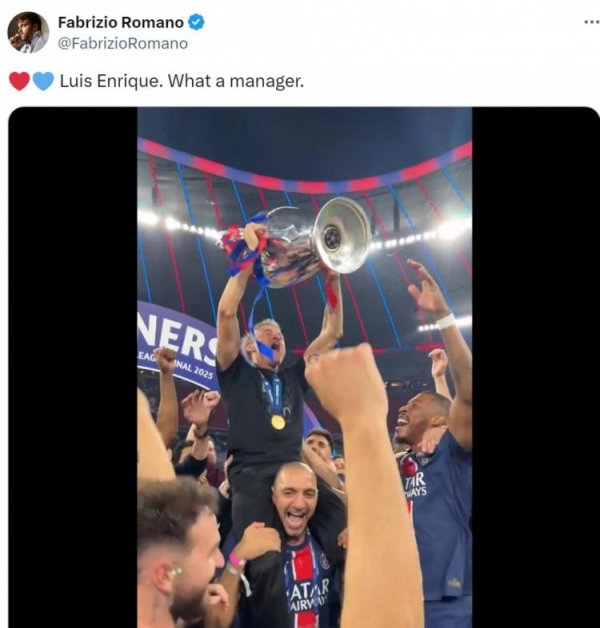 马洛塔暗示:“今天关于咱们来说是一个倒霉的夜晚,敌手在各个方面皆远胜于咱们,但这并不影响咱们一个赛季的推崇,不行抹去咱们之前在欧冠赛场上的征途。今天晚上咱们景色欠安,但我要感谢打败拜和蔼巴塞罗那等强队的主陶冶和球员们,这家俱乐部和团队配得上在欧冠决赛的舞台上展示我方。”
