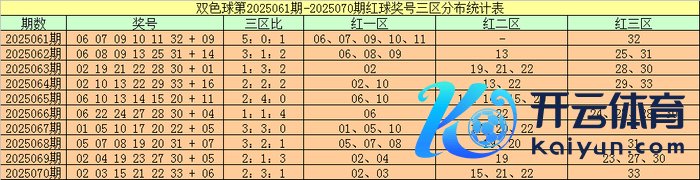双色球第2025070期奖号为:02 03 15 21 22 33 + 06,红球三区比为2:3:1。