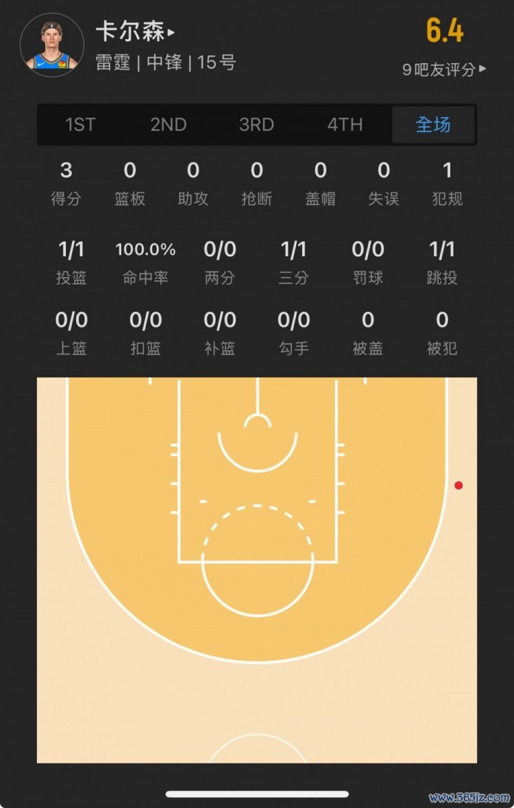 雷霆落第秀 布兰登-卡尔森 登场2.5分钟