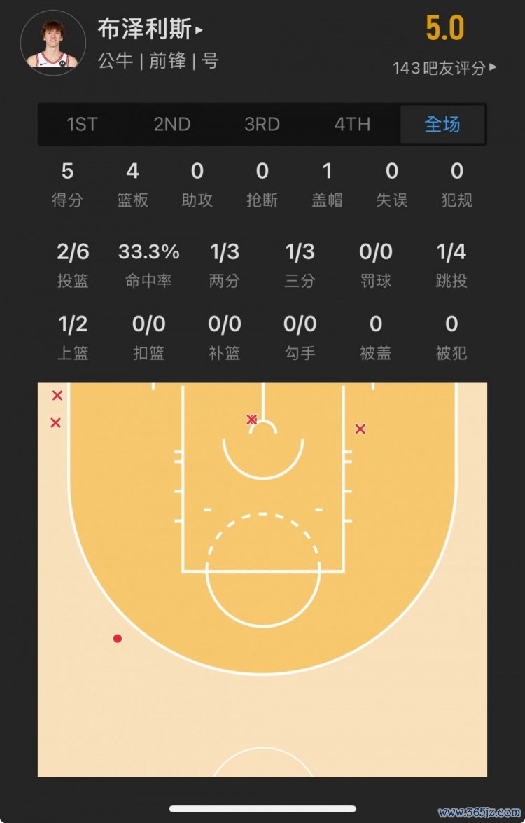 公牛11号秀 马塔斯-布泽利斯 登场11.9分钟