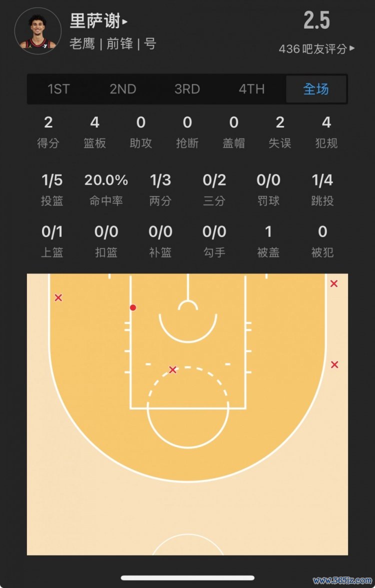 老鹰状元秀 扎卡里-里萨谢 登场17.3分钟