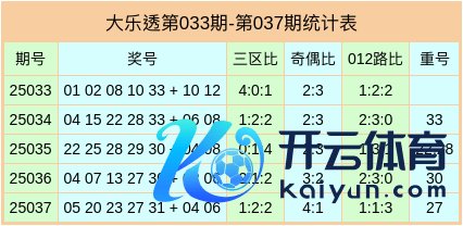 大乐透第25037期开出奖号为:05、20、23、27、31 + 04、06,前区三区比1:2:2下球网体育信息,奇偶比为4:1,012路比为1:1:3,开出1枚重号27。