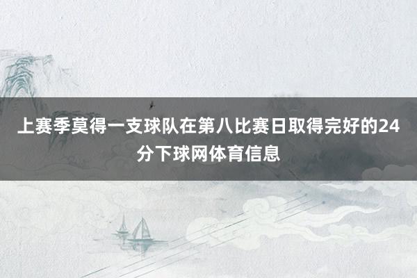 上赛季莫得一支球队在第八比赛日取得完好的24分下球网体育信息