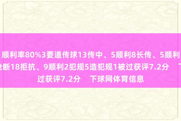 顺利率80%3要道传球13传中、5顺利8长传、5顺利4突围1禁绝2抢断18拒抗、9顺利2犯规5造犯规1被过获评7.2分 下球网体育信息